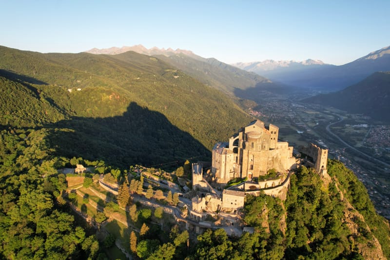 Questo colosso in pietra grigia si staglia sull’orizzonte con una facciata alta più di 40 metri, inserendosi armoniosamente nel contesto naturale della Val Susa.